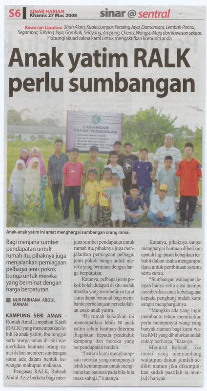 Here is some update from the meeting for RALK Charity drive on 30/3/08.